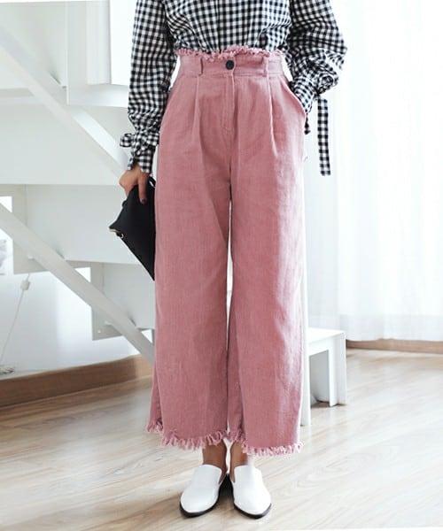 ボトムスの定番となりつつあるワイドパンツがシーズンライクなコーデュロイ素材で登場!ウエストラインと裾にフリンジをあしらい今風に^^ハイウエストから足首まで落ちるレッグラインでスタイルアップ効果も期待できます♪トレンド感・季節感ともに楽しめる一本です! ※WEARに記載してある金額と、DHOLIC通販サイトに記載してある金額にシステム都合上、稀に誤差が生じます。正しい金額はDHOLIC通販サイトに記載された金額です。