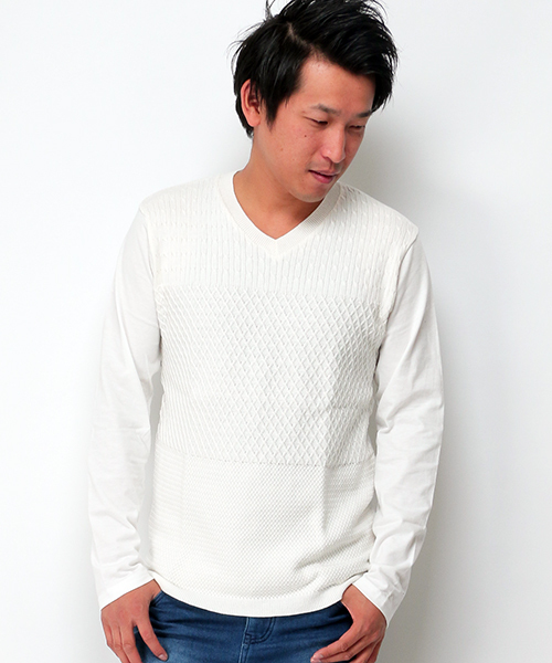 一枚でも手抜き感なく着こなせるニットコンビのロングTシャツ。カットソーの着心地のよさはさそのままに、ニット切り替えによるデザイン性が印象的です。 一枚でもしっかり奥行きのあるコーディネートにしてくれるから、無地Tでは物足りない方などにもおすすめ!