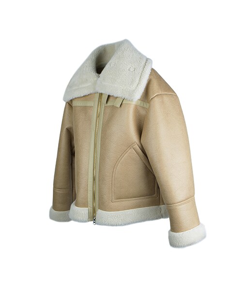 WIDE FIT MOUTON JACKET_BEIGE