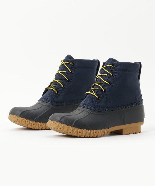 『アウトドアシーンにも最適な高機能ファブリックを使用』 ボディの素材は摩擦、耐久性に優れた高機能ファブリックであるコーデュラ®ファブリックを使用。アッパー部分はハンティングブーツのような見た目のラバー仕様で、高いグリップのアウトソールにすることで悪路でも良好な歩行性を実現。雨の日はもちろん、フェスやキャンプなどの様々なアウトドアシーンにも対応します。 見た目以上に軽量なので、一日履いてもストレスフリー。もちろん普段使いとして、スカーチョやマキシ丈スカートなど旬なボトムとも相性抜群です。オリジナルのヒールパッチをさりげなくアクセントにしました。