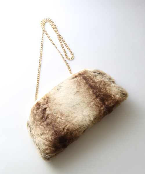 トレンド感たっぷりのフェイクファーを使ったクラッチバッグ。秋冬のパーティーシーンに華やかさをプラスしてくれます。ショルダーチェーン付なので、デイリースタイルのハズしにもおすすめです。