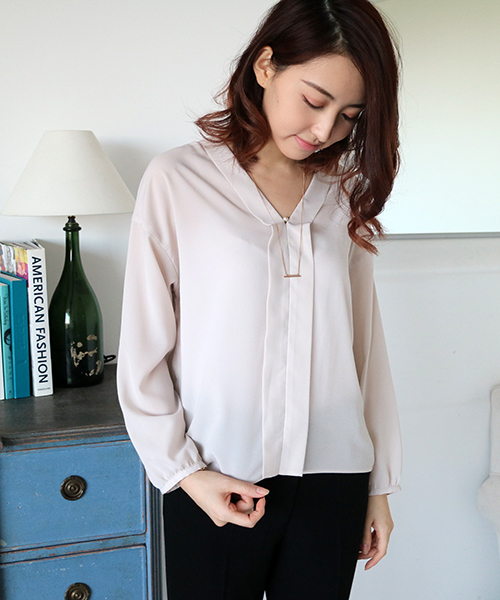 中央のフリルでフェミニンさ宿るフリルブラウス!V字に開いた襟元は、程よいヌケポイント作り、リラックスフォルムで女性らしい着こなしへ。スカートからパンツまで相性良く、オフィスstyleに活躍してくれるアイテムです。