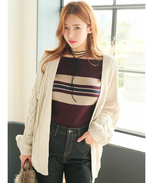 太めの毛糸でざっくりふんわりと編まれたたっぷりワイドデザインのニットカーデどんなスタイリングもゆるカワに◎