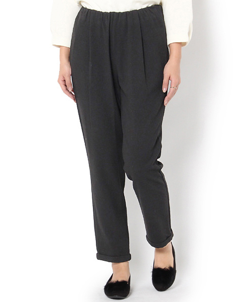 トップスインしてウエスト部分を見せる着こなしにぴったりの、起毛裾ダブル付けゴムパンツです。起毛の柔らかな生地を使用し履きやすさも抜群の一着。裾に向かってすぼむすっきりとしたシルエットで、大人カジュアルやオンスタイルにぴったりのアイテムです。ウエストのゴムで履き心地にも優しい◎