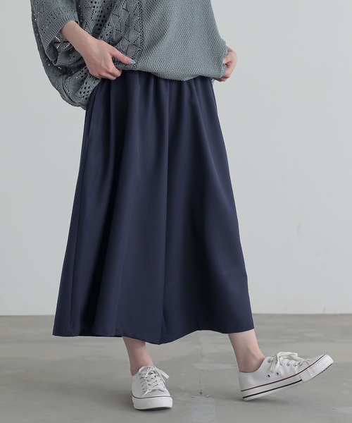 ■デザイン 程良い丈感と美シルエットで魅せる大人顔ガウチョパンツ。贅沢に使用した生地が、歩く度に上品な揺れ感を作ります。ウエストはシャーリング仕様で楽に着用できます。両サイドには便利なポケット付き。 ■素材 すとんと綺麗な落ち感のある布帛生地。伸縮性があり快適な穿き心地です。さらりとした肌触りで程良い厚みがあり、ロングシーズン活躍する素材感。 ■コーディネート 様々なトップスに合わせやすい、着回しに活躍する一枚です。パンプス・ブーツ・サンダル合わせなど、程良い丈感で足元のコーディネートも広がります◎ ※生産時期により混率が異なります。ご了承の上、お買い求めください。