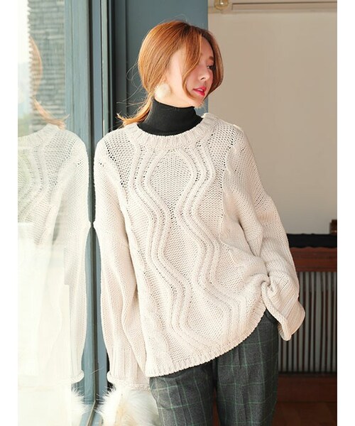 大き過ぎないサイズ感でバランスよく着れるニット。コンパクトなので、ワイドパンツやフレアスカートなどのボリュームのあるボトムスを合わせるのが可愛い!