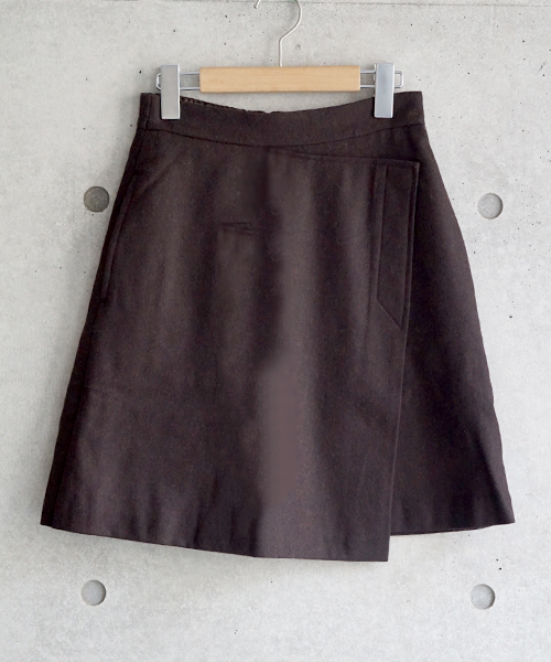 ◆チェックがポイント◆ 品のよさが魅力的な上質であたたかみのあるフラノウールを使用したスカートです。足をすっきり細く見せる効果のある台形シルエットでどんなスタイルにも合わせられる着回し力抜群の一枚。トレンドのラップ巻き風デザインなのもポイントです。コンパクトな丈感のスカートはオーバーサイズのトップスと着こなすのがオススメ。裏地有りです。