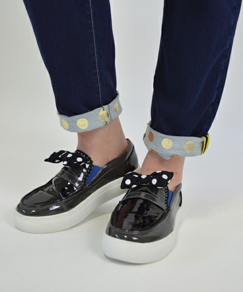 今の気分にピッタリな少し厚底のローファーです。甲の部分に取り外しのできるリボンクリップがついていて、2通りの履き方ができます。 ソール: