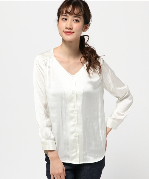 毎シーズン人気のあるビエラブラウス!今回は光沢感のある生地で仕立て、つるっとした素材感にリッチな雰囲気たっぷりです。シャープなVネックで顔周りをスッキリと、女性らしいヌケポイントも作ります。ボトムスINしやすく、パンツからスカートstyleまで大人の魅力を引き出した着こなしが完成します。