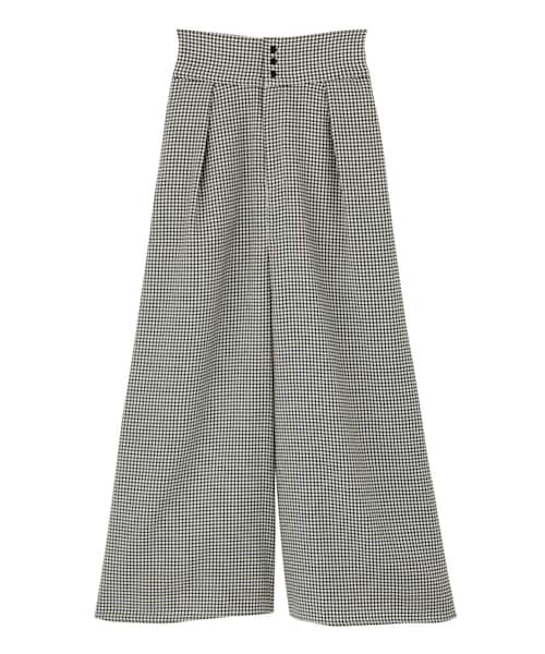 カジュアルなチェック柄のワイドパンツ。バックのレースアップデザインが女性らしさを惹き立て、大人カジュアルな着こなしを後押しします。今季トレンドのワイドなフォルムで、脚を長く見せるトップスをインしたスタイリングがオススメです。