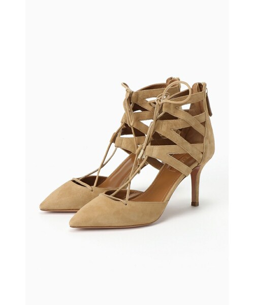 ヌーディーなスウェードベージュは、足を長くきれいに演出。ボリュームのあるアンクルストラップが足首をしっかりホールドし、華奢な印象に。タイトスカートと合わせて女性らしく、デニムのスタイリングにもおすすめの1足です。【AQUA ZZURA(アクアズッラ)】 MADE IN フィレンツェのSHOESブランド。 RENE Caovilla やサルヴァトーレフェラガモなど、色っぽく女性らしい靴が得意なメゾンで経験を積んだデザイナーが作る、繊細でセクシーな足元を演出するための靴です。 指の股が見える深いカッティングや、極細のレースアップ、華奢なピンヒールが女っぽさを際立たせ、スタイリングに色気を持たせてくれます。 ※取り扱いについては、商品についている洗濯表示にてご確認下さい。※店頭及び屋外での撮影画像は、光の当たり具合で色味が違って見える場合があります。 商品の色味はスタジオ撮影の画像をご参照下さい。