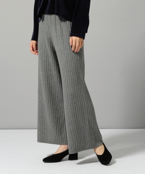 ワイドシルエットに、適度な落ち感が合わさったシルエット抜群のニットパンツ。 光沢と温かみを併せ持つ素材を、立体的に見えるようワイドリブに編みたてています。 ニットパンツにとって天敵となるピリング(毛玉)を防ぐため、 ウール混率を押さえ、ピリングができるだけ起きにくいように仕上げました。 同時に見た目のふっくら感はストレッチ糸を一緒に撚ることで実現しています。 ストンと落ちるワイドなシルエットにもこだわり、シルエットを優先させ、あえてポケットは無くしています。 冬の重たいコーディネートの外しにぜひアクセントとしておすすめです。