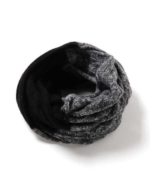 まるでニットの様なスヌード無地の糸とミックス糸、2つの糸を使い冬の風物詩“ケーブル編み”で作りました。まるでニットの様な、温もりある表情が特徴。男女兼用可能なサイズとカラーリングで、これからの季節はギフトにもおすすめです。