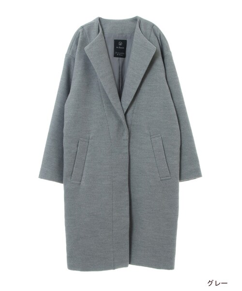 【FUDGE 10月号掲載】大きめシルエットが特徴的なオープンカラーコート。開衿なので首元がスッキリと見えます。中にニットを着てもかさばらずに羽織れるのがポイント。今季トレンドのボリュームのあるオフショルニットとあわせるのがおすすめです。ベーシックな無地デザインで飽きが来ずに長くお使いいただける1着。ワイドパンツとあわせてメンズライクに、膝丈スカートとあわせてフェミニンにと着回しが利きます。総裏地付きで保温性もバッチリ。