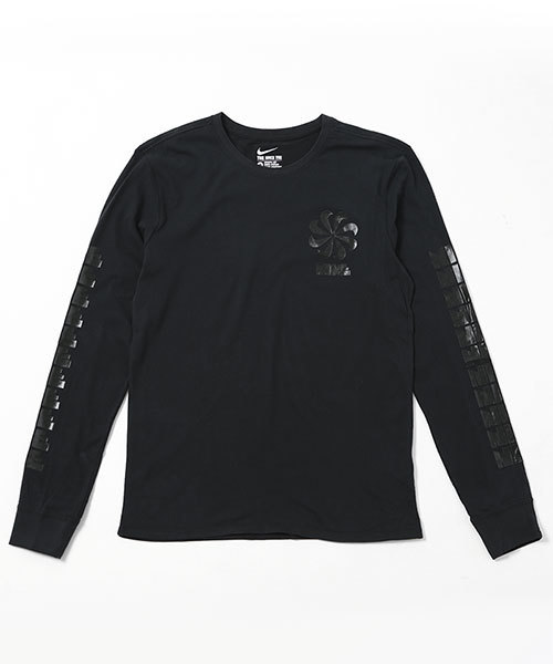 NIKE(ナイキ)インパクトあるプリントが特徴ナイキのスリーブプリントロングスリーブTシャツ。 大胆に配した袖のプリントが特徴。太めのナイキロゴが特徴的。 人気のスポーツミックススタイルにおススメです。洗濯:洗濯機使用可