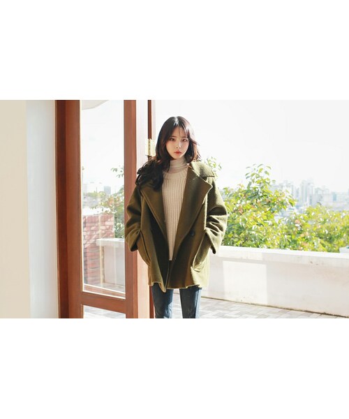 オーバーサイズのシンプルコートのご紹介です。 ウールブレンド素材を使用して、保温性の高いアイテムです。 ドロップショルダーで女の子らしいシルエットを演出してくれます。 トレンドのオーバーサイズのコートはハイセンスなコーディネートをサポートします。