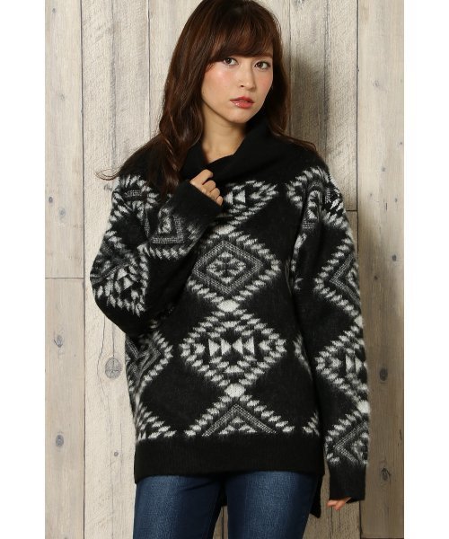 人気のオルテガニットがふわふわタッチの起毛素材で登場!起毛素材なら柄の見え方がマイルドになるため、総柄でも挑戦しやすくなっています。旬のリラックスモードを作るオフタートルがポイント♪