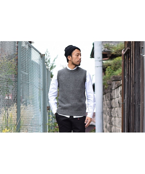 ■ブランド説明■ 【Soglia(ソリア)】 coochucampのデザイナーが手掛ける日本製に拘ったニット専業ブランドです。日本の熟練されたニッターによる柔らかな編み立てと、日本の市場ではあまり見られないヨーロッパの糸を使ってあくまでも国内生産を貫き、上質且つ、個性的なカラーリングのニットを生み出しています。発色性の良さや、編み上げた時の肌触りの良さ、柔らかな風合いの良さに高い評価を受けています。 ----------------------------------------------------- ■アイテム説明■ 【 LANDNOAH SWEATER/ラドナーセーター 】 為替の影響を受けやすいインポートのセーターではなく、国産の上質なセーターを探している中でこのセーターと出会いました。シンプルにまとめたデザインと現代的なタイトめのサイジングによってスタイリッシュに着こなしていただける、クルーネックのプルオーバー型ベストです。いつものシャツやカットソーにプラスするだけワンランク上の着こなしを楽しんでいたける一枚です。 【生地/素材】 イギリス・ウェールズ地方の丘陵で育ったラドナー種と羊毛をブレンドした柔らかなウール100%の生地は柔らかで、起毛感も少なくさらっとした肌触り。保温性もとても高いです。ストレッチ性もあるのでコンパクトなサイズ感でも、窮屈さを感じさせず身体をやさしく包みフィットしてくれます。 着こなしに温かさと深みをプラスしてくれる素材感です。 【シルエット/サイズ感】 タイトめの身幅と着丈も短めに設定したコンパクトなサイズ感です。ゆったりなサイジングのものが多いウールセーターですが、こちらはジャストサイズでスタイリッシュに着こなしていただけます。タイトなサイズ感ですが、伸縮性の高いウールを使用していますのでいつものサイズをお選びいただければジャストサイズで着ていただけると思います。ごわつかずシャツとのレイヤードもしやすいです。数値からも分かりますが、サイズ毎に大きくサイズ感が変わるグレーディングではないので、少しゆったりめに着られたい方もワンサイズ上げていただければルーズにはならない適度なゆるさを楽しんでいただけると思います。サイズSは女性にもおすすめしやすいサイズ感です。 【素材】 ウール100% 日本製 【カラー】 グレー ※ネイビーのショッピングページはこちら http://comoda2013.com/items/5821d62999c3cd02b3000a61 ※カーキのショッピングページはこちら http://comoda2013.com/items/5821d3afa458c01d61000930 【サイズ】 肩幅/身幅/着丈/ S:36.5cm/47cm/63cm M:37cm/48cm/64cm L:39cm/49cm/66cm ※手作業での計測のため、多少の誤差はご了承ください。 ※着用画像:身長168cm,55kg サイズM着用 ■コーディネイトアイテム■ HAT:【SAINTJAMES】ウールニットキャップ ブラック ※後日紹介予定 TOPS:【Soglia】ラドナーウール クルーネックベスト サイズM http://comoda2013.com/items/5821ca5d9821cc26d600054d SHIRT:【Manualalphabet】クラシックフィットシャツ ホワイト サイズ http://comoda2013.com/items/57c03cba99c3cd5790003957 BOTTOMS:【GRAMICCI】ウールナローパンツ ブラック サイズS http://comoda2013.com/items/5800d07000d331ee88004324 SHOES:【BLUNDSTONE】サイドゴアブーツ#500 スタウトブラウン※後日WEBストアUP予定 ■ブログ紹介ページ https://comoda2013.tumblr.com/post/152944536008/ ※サイズS着用画像掲載 https://comoda2013.tumblr.com/post/152944599558/ ※サイズM着用画像掲載