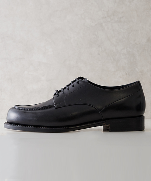 無駄を省いたシンプルなデザインのUチップシューズ。 昭和16年9月の創業以来、グッドイヤーウェルト製法に拘り日本最高峰のシューズメーカーとも評される山形県の宮城興業株式会社で作られています。 ステアレザーを使用し、バフ加工を施すことで独特の光沢感と革表面の滑らかさが特徴です。 フォーマルアイテムもカジュアルアイテムもどちらとも相性が良く合わせるアイテムを選びません。