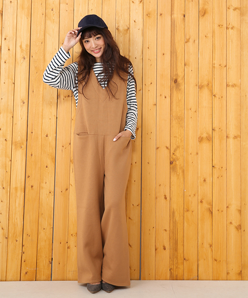 マットなスウェードを思わせる風合いの生地がこれからの季節にぴったりのカットオールインワンです。パンツ部分は裾にかけて広がったややワイドなシルエット。一枚で旬コーデをかなえてくれる、今シーズン手にしておきたいアイテムの一つ☆ きちんと感のある生地ながら、裏地はやや起毛を加えているので、着心地の良さもお墨付きです♪ 着こなし次第では、ちょっとしたお呼ばれにも対応してくれます。