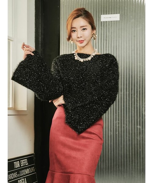 ふっくらしたシルエットに素材の キラキラ感で愛らしいムード高める ニットプルオーバーの登場です。