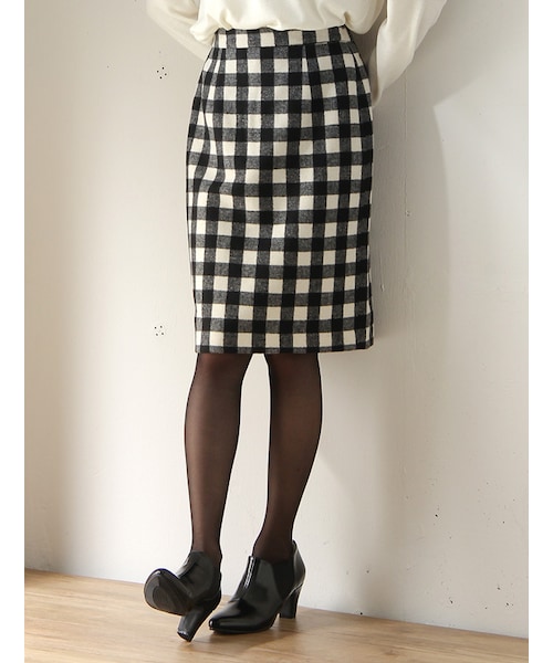 きちんと感もある膝丈タイトスカート。幼くなりがちなチェック柄もモノトーンの配色で大人の着こなしに◎今季はブラウスを合わせたレトロフェミニンコーデにもおすすめです。