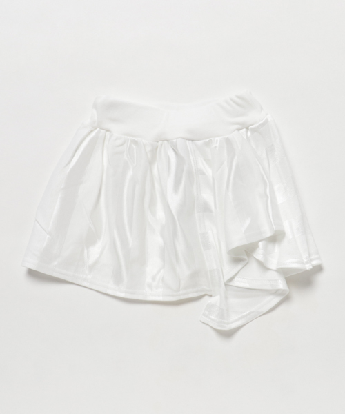 光沢感のあるボーダージャガードのスカートは、左側にのひらひら感がとってもカワイイデザイン。ドレッシーな雰囲気でシルエットもきれいな1着です。レングスはミニ丈になります。