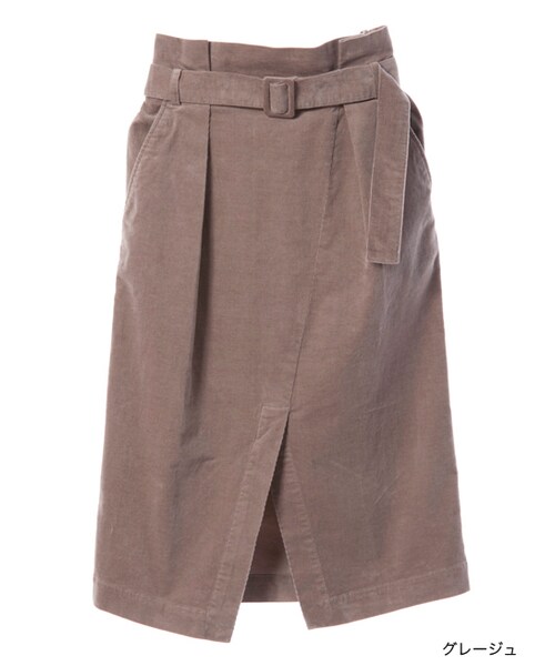 ウエストのリボンがアクセントになるラップ風スカート。ひざ下丈が大人な雰囲気でレディなコーデに最適なアイテムです。細畝のコーデュロイを使っているので、カジュアル感ときれいめ感のバランスが良いアイテムです。ハリのあるしっかりとした生地なのでキレイなシルエットが出ます。脇ファスナー付きなので着脱が楽なのもオススメポイントです。ウエストのリボンは取り外し可能なので気分でコーデに変化を付けられます。トップスをインして着るとメリハリのあるコーデが出来ます。※裏地はつきません。