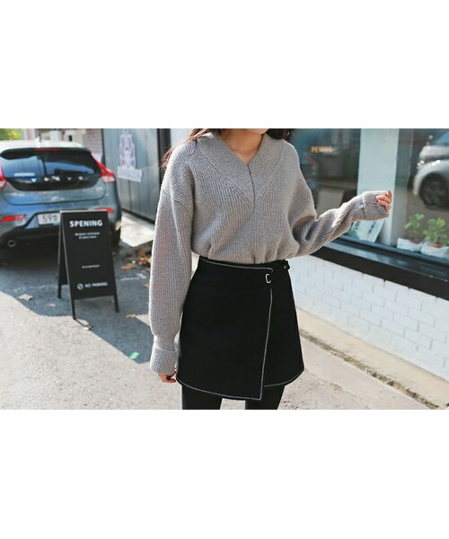 着回しの効くベーシックなVネックニットです。 深いVネックが女性らしくちょっぴりセクシー☆ 定番のリブニットを、女性らしくふんわりとしたシルエットで仕上げました。 ベーシックな基本ニットで着回し力もGOOD