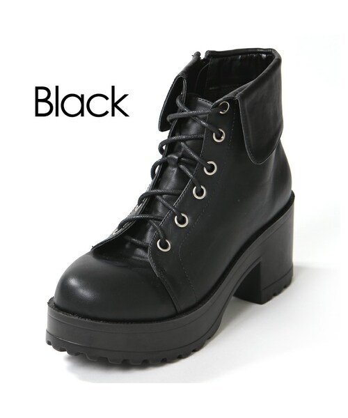 スタイリッシュなレースアップデザインが足元をクールに演出するショートブーツ♪ 安定感のある太めのヒールがトレンドライクなルックスに♂ 内側にファスナーがついている着脱楽チン仕様がうれしい◎