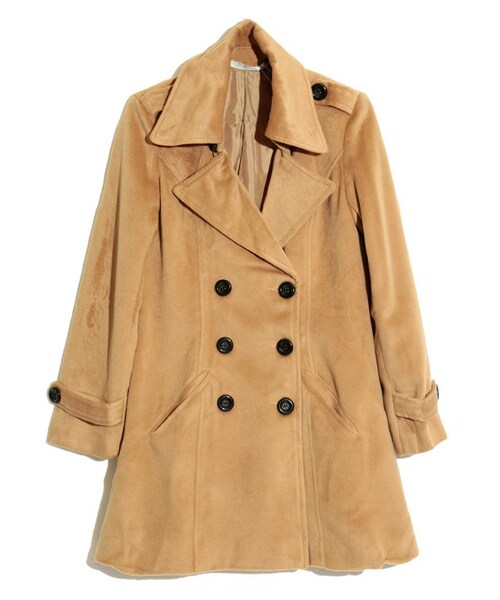 スタンドカラーのウールトレンチコート♪綿混のフェイクウールでなめらかな肌触りです〇 ボタンダウンや肩のエポーレット、袖口のストラップなどベーシックなディテールです。 スッキリとした細身のシルエットでスタイルアップ〇着用時のシルエットにこだわったコートです♪