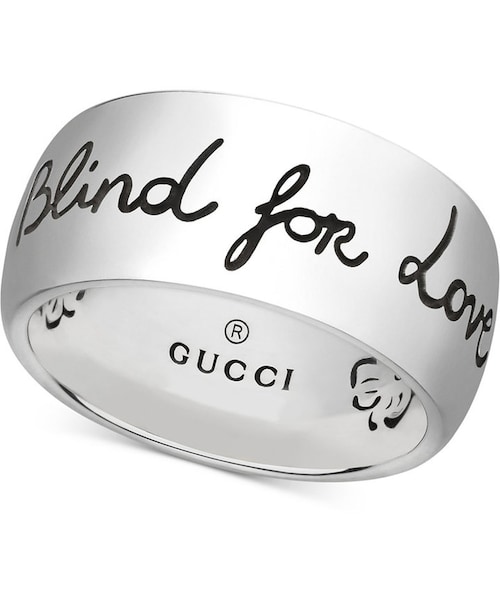 Pretty flowing script is etched onto this stunning Blind for Love ring designed by Gucci. Created in sterling silver with aureco black finish. Size 6-3/4". Web ID: 4292181