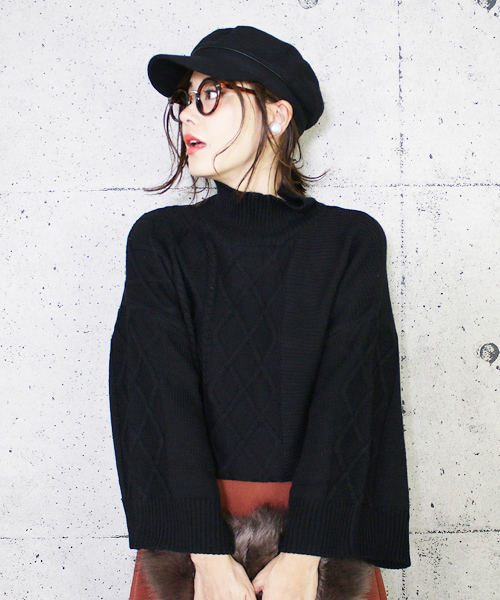 印象的なベルスリーブの旬顔ハイネック♪ 【ポイント】 しっかり立ち上がるハイネックで、詰まった首もとがポイント♪ フロントのアラン模様はアシンメトリーな配置で印象的に。 袖にも編み模様を施して、サイドビューも気を抜かない 肩落ちゆるっとデザインに、ふくらむベルスリーブが他とは違う大人可愛いニットスタイルを演出。 【生地感】 ふんわり柔らかな肌触りで、ハイネックでもチクチクしにくい素材感。 【サイズ感】 普段Sサイズ着用の方⇒○ 普段Mサイズ着用の方⇒○ 普段Lサイズ着用の方⇒△ ※体型やお好みにより個人差がございます。 あくまで着用時の雰囲気の目安としてお考え下さい。 ※モデル着用写真は撮影環境により、多少実際のカラーと異なる場合がございます。