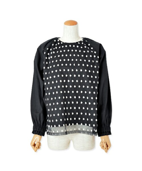 花柄の刺繍にチュールが特徴的で可愛らしいアイテム。 全体的にゆったりとしたシルエットですが、袖口がきゅっとなっているのですっきりとした印象に。 裾の透け感もcute。肩から下にかけてパリッとした生地感の素材も暖かみがあり、これからの季節でも着やすくなっています。
