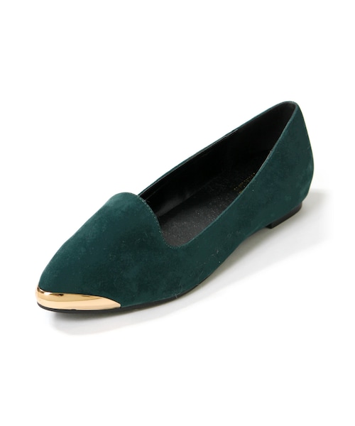 シンプルなボディに施したメタルがキラリと輝くフラットシューズ♪ 1点投入でグッとハイセンスに魅せてくれるパワーアイテムです☆ サクサク歩けるフラットタイプで、デイリーに活躍します◎
