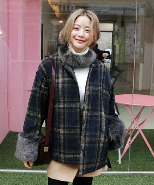 ファーとチェックの組み合わせが可愛らしい冬アウター❤キルティング仕立ての裏地で保温性もばっちり◎!フェイクファーんのマフラーもセットで可愛く防寒ができちゃいます♪ノーカラーだから気兼ねなく色んなコーデの上から羽織りやすいですよ^^ ※WEARに記載してある金額と、DHOLIC通販サイトに記載してある金額にシステム都合上、稀に誤差が生じます。正しい金額はDHOLIC通販サイトに記載された金額です。