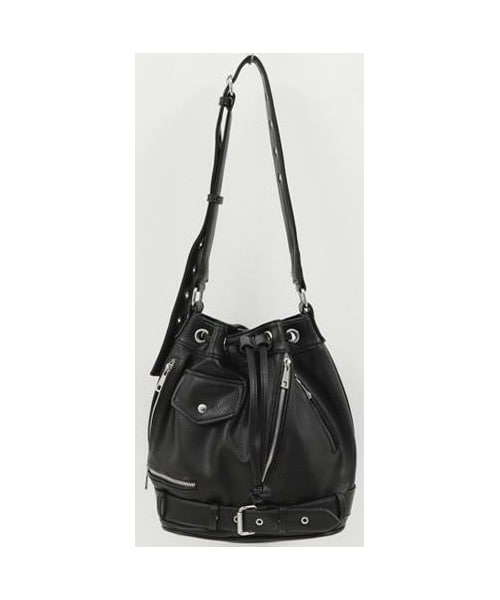 コロンとした形がかわいい巾着型ショルダーバッグ☆ ベルト&ファスナーのディテールがオシャレ度をアップしてくれます↑ 着こなしにリズム感をプラスしてくれるパンチングやベルトが魅力的☆ このシーズンにぴったりのショルダーバッグです。