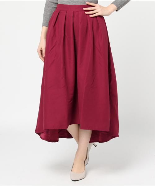 色合いに深みが出るソフトスウェード仕立てのスカート。後ろ丈が長いイレギュラーヘムは、着こなしに動きを添えるだけでなく、重たさが軽減されコーディネートのバランスが取りやすくなっています。 カラー展開は、ベーシックカラーに加え、鮮度を上げる明るめカラーもラインナップ! 今から春までロングランで活躍してくれますよ♪