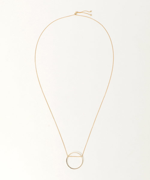 華奢なチェーンにマルモチーフがポイントの、シンプルながら存在感を放つネックレス。スッキリとしたデザインは、テイストを選ばず使えコーデを引き立てます♪ スライド式で長さ調節ができ、オンオフ問わずに使いやすいデザインは、デイリー使いにもピッタリ。※メッキ製品は変色してしまいがちです。こまめなお手入れで防止してください。アレルギー体質の方や体調が低下している方など、かぶれることがありますので十分にご注意ください。 ※アクセサリーは壊れやすいものです。取扱いにご注意ください。 ※その他お取り扱いに関しましては、商品に付属のアテンションタグをご覧ください。