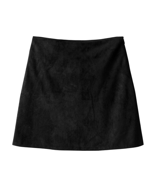 台形シルエットでレトロムード漂うスカート♪ スエードマテリアルがシックな風合いで気品を放ちます♂ すっきりシルエットのミニ丈でフレッシュにデザインしました◎ ★裏地付きです。