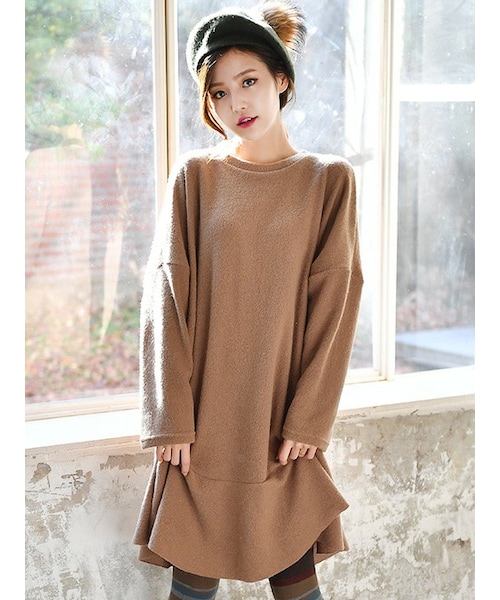 ゆったりとしたサイズ感で着ることができます。 1枚着でOKなのはもちろん、今季はスカートやパンツをレイヤードしたスタイリングがオススメです。 シンプルながらもトレンド感たっぷりに仕上げました。 さらっと一枚で着て、スニーカーを合わせるだけで可愛く決まります。 ふっくらとした起毛感が心地良い肉感のあるニット素材を使用しています。 シルエットですがバランスも良く、 細身パンツと合わせたりとボリューム感を活かした着こなすもおすすめです