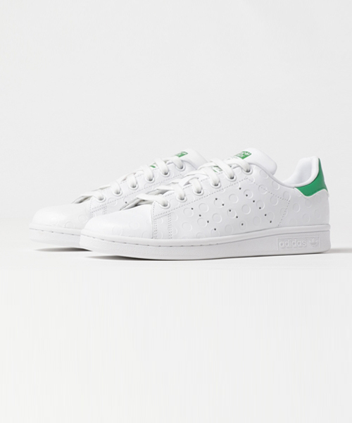 adidas Originals Sneaker(アディダスオリジナルス スニーカー)。水玉模様のデボス加工のアッパーを伴って、控えめながら印象的な見た目を加えた「STAN SMITH W」は、伝統の“SS”コートスタイルの復刻版。パンチングのスリーストライプスを施し、アイコニックなラバーカップソールをあしらっている。