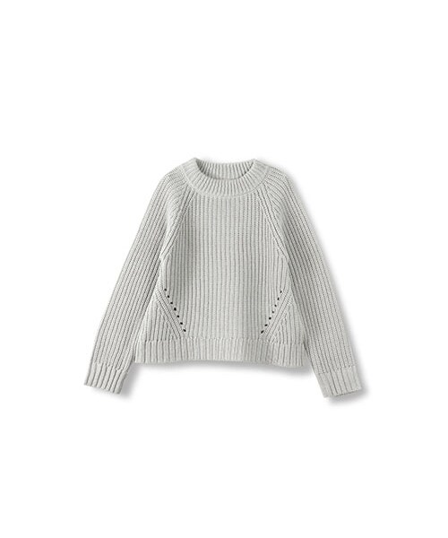 ざっくり編みが可愛いシンプルニットです。肩・裾部分の編地に変化をもたせることでデザインポイントにしています。少し太めのリブもポイントです。
