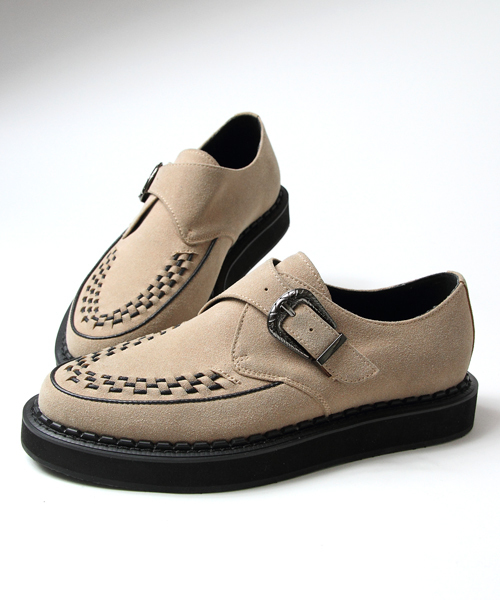 JACKROSE×Luv maisonから今春新作のラバーソールが登場!! ストリートシーンにて厚底やボリュームのある足元に注目が集まる中、ウエスタンバックルのアクセントが効いたラバーソールが登場。相性のいいスキニーパンツと合わせ、春のストリートスタイルに取り入れたい。存在感抜群でコーディネートのアクセントになること間違い無しだ。 カラーはベージ、ブラックの2色、サイズはM、Lの2サイズで展開中。