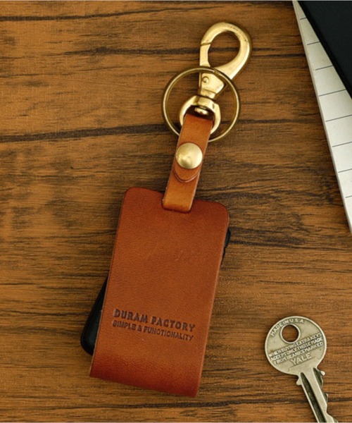 使いたいときにサッと取り出せるキーホルダー 車のスマートキーの為にデザインされた、シンプルで機能的なキーケースのLサイズ。 ■特徴 ・スマートキーを横からスライドしてサッと操作できる ・外側のキーリングにも鍵の取り付け可 ・ナスカン付きでベルトループやバッグ、カラビナ、ネックストラップに取り付け可能 ・レディース、メンズ問わないシックでおしゃれなカラー展開 ■サイズ ・高さ7.5cm×幅4cmまでのスマートキーに対応 ・取り付け穴はキーの横幅に対してセンターにあり、穴の幅は1cm以上必要 ・スマートキーと家の鍵など2個以上取り付け可能。(サイズ確認要) ※Sサイズ(品番:kb117)は高さ6.5cm×幅4cmまでのスマートキーに対応 ■素材 日本国内で加工された植物性タンニン鞣しの革を使ったナチュラルな質感の素材。福岡県糸島市の工房で一つ一つ丁寧に手作りしています。 ■ブランド:DURAM FACTORY(ドゥラムファクトリー) 海と山に囲まれた福岡県糸島を拠点とするDURAM FACTORYのレザープロダクト。 「シンプルであること」「使い勝手が良いこと」「永く使えること」という基本的な要素を追求したものづくりを行っています。 それらはすべて職人たちの手作業によってつくられており、さらに実際に使ってみて細かな改良が何度も重ねられた結果、本当に使いやすいフォルムが導き出されます。 【注意事項】 ・キーを装着後、ネジの反対側を固定しコインやマイナスドライバーなどでネジを止まるまでしっかりと回してください。ネジが緩い場合、外れてキーが落ちる恐れがあります。定期的にネジの緩みがないかをご確認ください。 ・植物性タンニン鞣しの革を使用しているため、色むら、シワ等がある場合がございます。 ▼色違いはこちら ・スマートキーホルダー 直営店限定 L / 品番:hsd0003 ▼サイズ違いはこちら ・スマートキーホルダーS / 品番:kb117 ・スマートキーホルダー 直営店限定 S / 品番:hsd0002 ------------------------ お気に入り機能を使ってお得な情報をGET! ▼商品のお気に入り登録 完売カラーの再入荷通知や、ラスト1点の通知、セールの通知も受け取ることができます。 ▼ブランドのお気に入り登録 新商品や再入荷等、いち早くブランドのお得な情報を受け取ることができます。 ------------------------