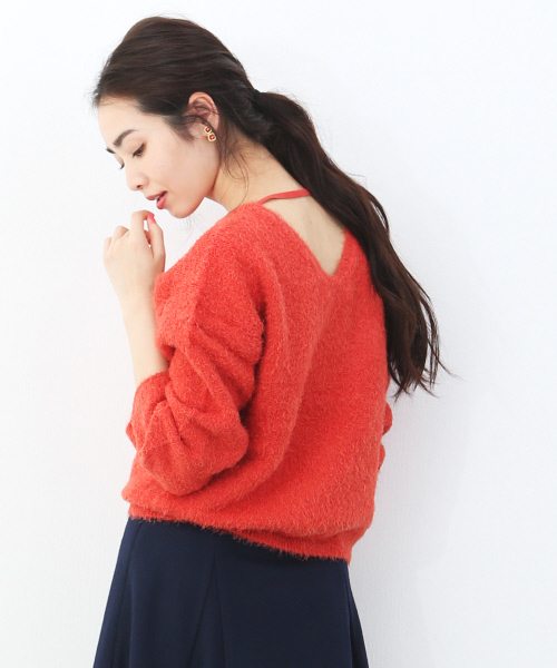 トレンドの表面感のあるイタリー糸を使用したファーライクなプルオーバーです。前後でVネック、クルーネックどちらも楽しめていただけます。柔らかくて着心地の良さにも拘った1枚。