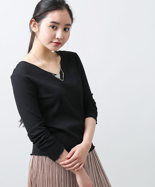 人気の2WAYデザインで仕上げたロングTシャツ。前後で違った印象を楽しめます。リブデザインが着こなしのアクセントになります。柔らかな肌触りで快適に着て頂けるひと品。一枚で着用頂くのは勿論、インナーとしてのアクセント使いもオススメ。今季はベレー帽やチョーカーなど、小物で遊びを効かせたコーディネートもオススメです。