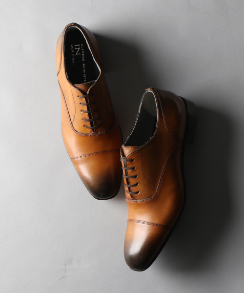 手染めでしか表現のできないムラ感が特徴【素材】キメの細かな肌目が特徴のカーフレザーを使用。【デザイン】ビジネスシーンでの使用を考えてデザインしたストレートチップ。熟練の職人の手で1点1点染め上げた1足。独特なムラが特徴となっています。サイズ感について ・コンバースやナイキなどといったスニーカーと比較してもおおよそ0.5cm~1cm程大きく作られております。Ex.コンバースで27.0cmを履かれている方は、SIZE:42(26.0cm)程度とお考え下さい。※履き方・足型等、個人差はございますので、あくまでも参考程度にお考え下さいませ。