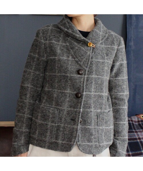 国産の上質なニット生地を使ったジャケット。 ボタンは本牛革、肘あては羊革を使い ループはイタリア製の丸革を三つ編みに編んで止めつけ、 そのループを止めるボタンは真鍮製と こだわりをたくさんつめ込みました。 裏地はありませんが、厚みが2,3ミリあるので、 温かいうえ、とても軽く、ニット生地なので、 窮屈感なく着ていただけます。 ニット生地にピッチをきれいに揃えてチェック柄を入れるのは とても難しいそうなのですが、 こちらの生地はそれを可能にしています。 そんなチェック柄を台無しにしてしまわないように、 柄合わせもきっちりと行いました。 屋内でのお買い物や、 お友達とのランチなどの時には、 とても重宝していただけると思います。 (保存袋付き) カラー:グレー・ネイビー 素材:ウール85%・ポリエステル15%(日本製) ボタン:本牛革ボタン(日本製) ループボタン:真鍮製(日本製) ループ:イタリア製丸革 肘あて:羊革(イタリア) サイズ:Mサイズ・Lサイズ サイズ詳細 Mサイズ バスト96cm 肩幅38cm 着丈54cm 袖丈58cm 袖口幅12.5cm Lサイズ バスト100cm 肩幅40cm 着丈56cm 袖丈59cm 袖口幅12.5cm お手入れ方法 ドライクリーニングをお勧めいたします。 (洗濯表示をお付けしています)