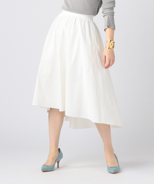 歩く姿を見せたくなる、春らしいフレアースカート。 【ESTNATION(エストネーション)】 コットン高混率の軽く少しナチュラルな表情が特徴のタフタ素材を使用したフレアースカートです。 オリジナルで付けている鮮やかなカラーが春の気分を高めてくれます。 長めの丈に前後差をつけ、女性らしくエレガントな雰囲気に今年らしい抜け感をプラスしています。 ※商品の画像はサンプルのため、実際の製品とは仕様や加工、サイズ等が若干異なる場合がございます。